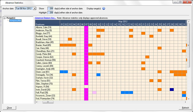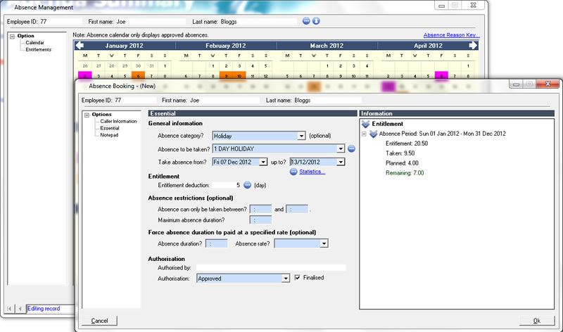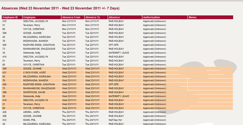 What would happen if all the fork-lift drivers were on holiday at the same time? Or the first aiders? or the staff qualified to complete key tasks in the workplace? timeware enables line managers to view holiday plans before authorising an absence booking. timeware also keeps track of the types of absenteeism in the workplace as well as monitoring the holidays taken and days booked in advanced.
