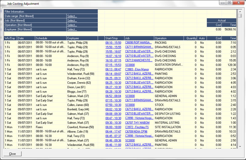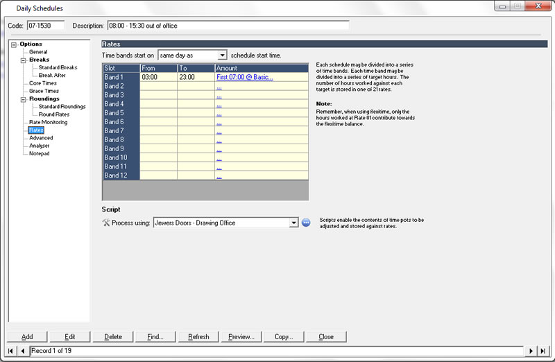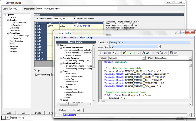 A timeware specialist will help the customer to identify the preferred method and will then produce a specification for the development team, enabling suitable scripts to be produced, providing a solution that fits the clients exact requirements.