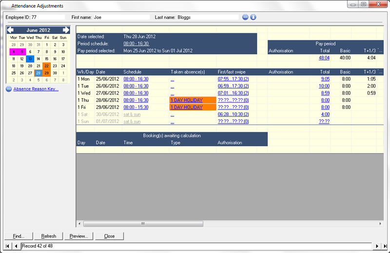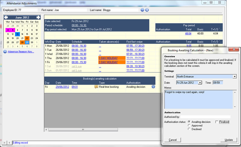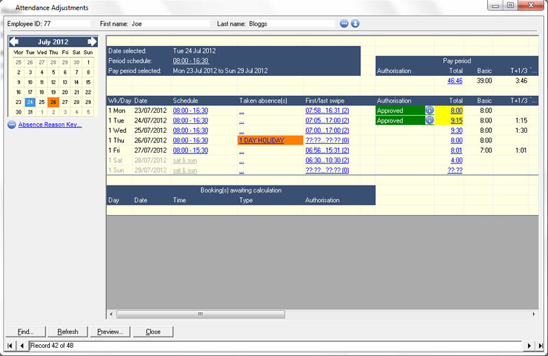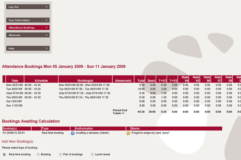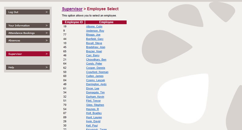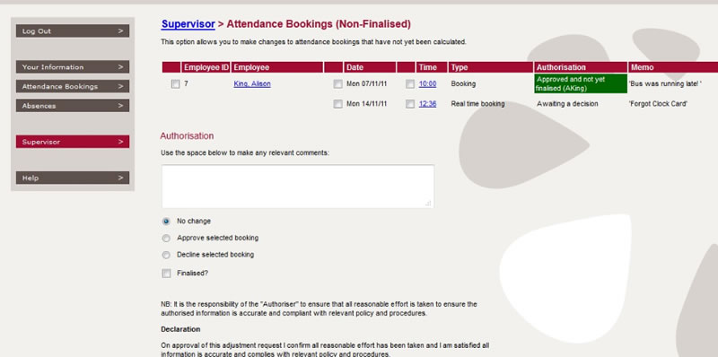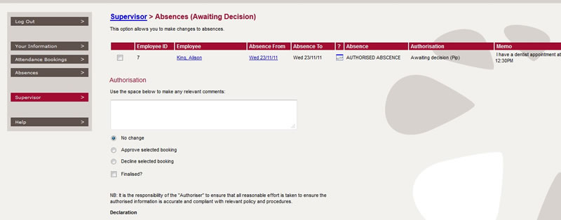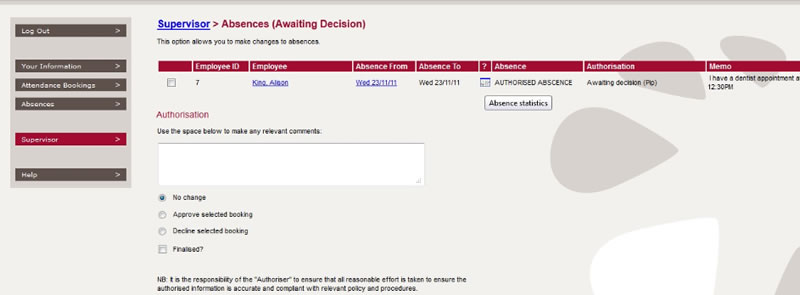 For the supervisor, the PIP enables instant access to employee attendance and absence information whilst allowing authorisation of various requests.