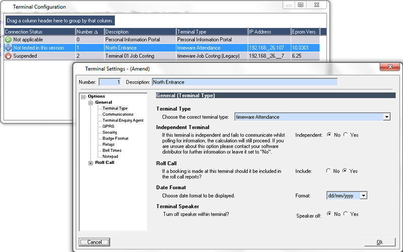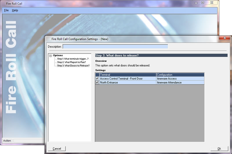The fire alarm roll call is a standard facility in timeware 2013. By connecting your existing fire alarm system to a timeware terminal, it is possible to generate an instant roll call report and unlock doors in the event of a fire.
