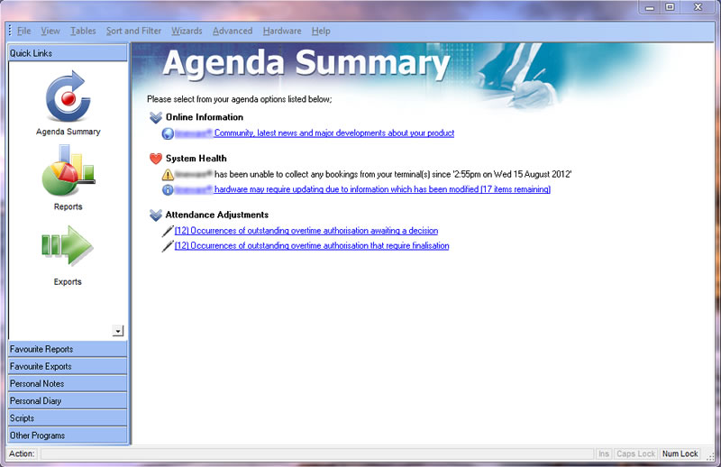 timeware® is recognised as the UK’s leading developer of workforce management solutions incorporating human resources, attendance, absence management, access control and fire roll-call systems. With over 4600 installations across the UK, Ireland and West Africa, the timeware name is synonymous with reliability and innovation. Whether your organisation is a large multi-site operation or a workshop with only a few staff, we believe that our product is the correct choice for you. timeware 2013 is the tenth generation of our core product and includes many new features. Please remember that there are no hidden extras - everything you see on the features lists is included as standard.